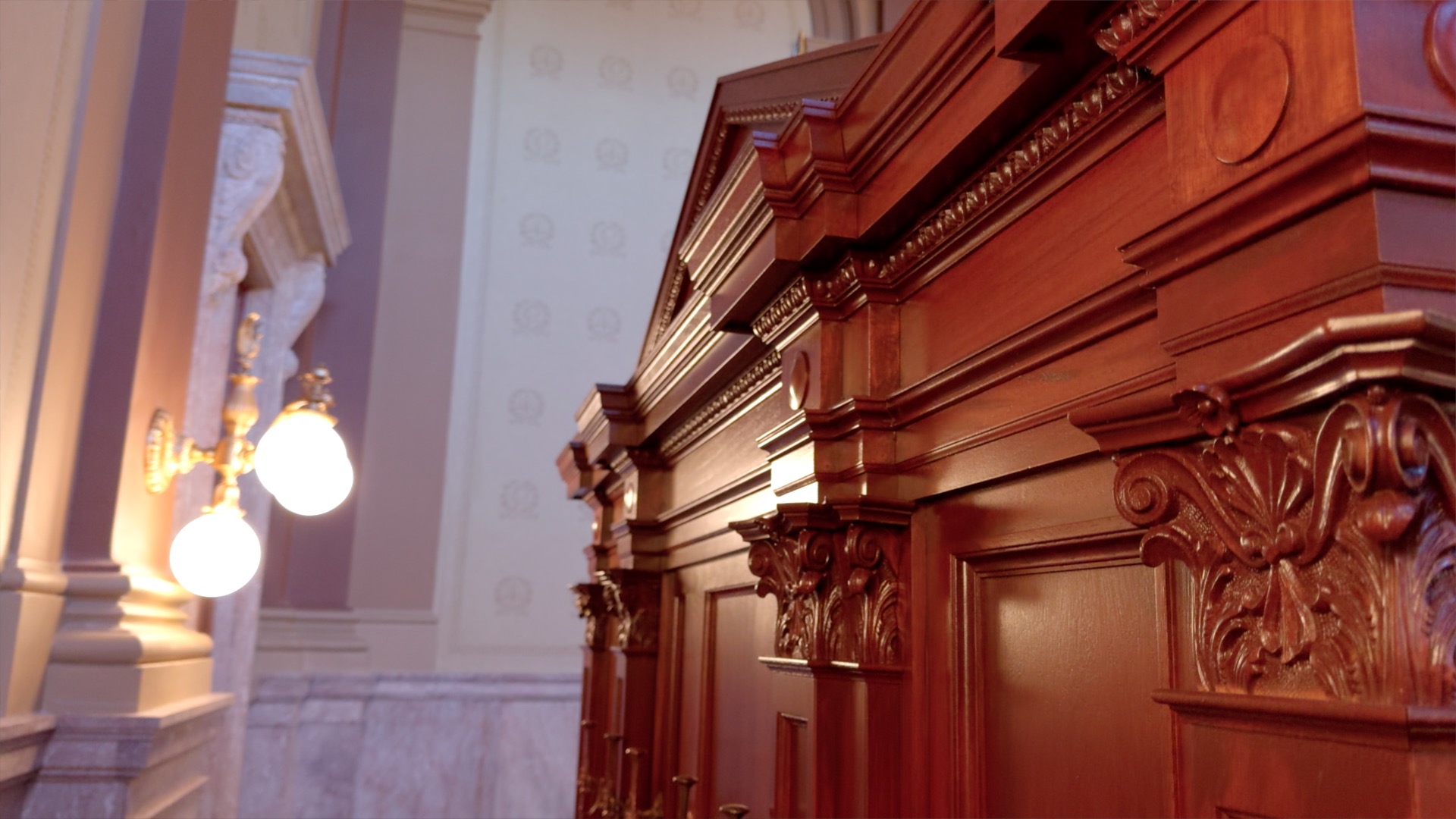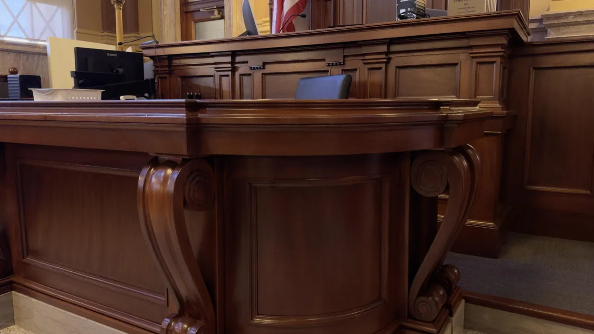 Courtroom millwork including judge's benches and witness stands